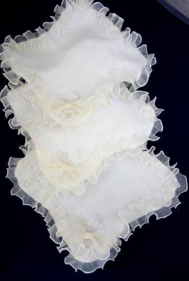 思い出のウエディングドレスをリメイクして大判ハンカチに致します。 ※25〜30センチ角でお作りします。※コットン100%4重ガーゼ素材。 ※リメイク品はウエディングドレスの縫い目をそのまま使用しております。 ※リメイクのご依頼の場合は送料実費となります。